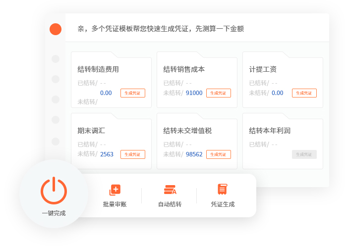 提供成本结转、损益结转、税费计提等各类模板,期末结账省心省力