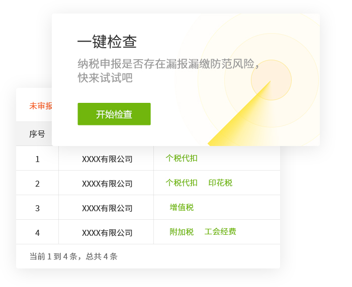 每月征期结束前,可用系统自动扫描所有税种申报情况,杜绝漏报缴